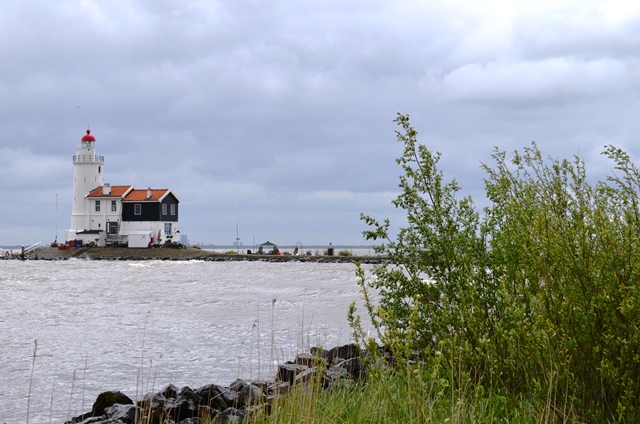 We begonnen de dag door koers te zetten naar het voormalig eiland Marken. Dat stond al een tijdje op ons lijstje. Gelukkig was het een koude doordeweekse mei-dag (zo zal het voorjaar van 2013 de geschiedenisboeken ingaan), zodat het er niet druk was. Marken blijkt wonderbaarlijk goed geconserveerd. Beter dan Volendam bijvoorbeeld. Op zich niet zo gek als je bedenkt dat de dam die het eiland met het vaste land verbindt pas in 1957 aangelegd werd. Rond de haven is normaal duidelijk de grootste toeristische concentratie, aangezien de houten huisjes daar een soort om-en-om bestemming hebben van horeca en souvenirwinkel.