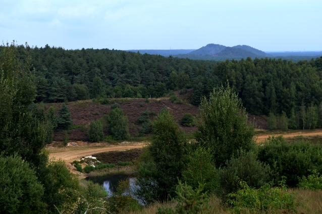 Bij de receptie van Narvic HomeParcs Mooi Zutendaal huren we twee fietsen voor een dag (7,50 euro p.p.). We kunnen voor 10 euro een fietsknooppuntenkaart kopen, maar mogen ook wel een route op de balie uitstippelen en simpelweg de nummers opschrijven. We kiezen voor die vriendelijk aangeboden optie. Het park ligt midden in het Nationaal Park Hoge Kempen, dat qua beplanting wel wat weg heeft van de Nederlandse Veluwe. Het wordt een route van 40 km. Onderweg komen we bloeiende heide tegen, vreemde en verlaten bedrijven, opmerkelijk grote huizen (het moet sowieso een rijke regio zijn gezien de enorme maneges die we passeren), we moeten soms pittige heuvels beklimmen en houden na een wandeling over‘de Mechelse Heide’ een lunchstop bij Fietscafé ‘t Salamanderke in Maasmechelen.