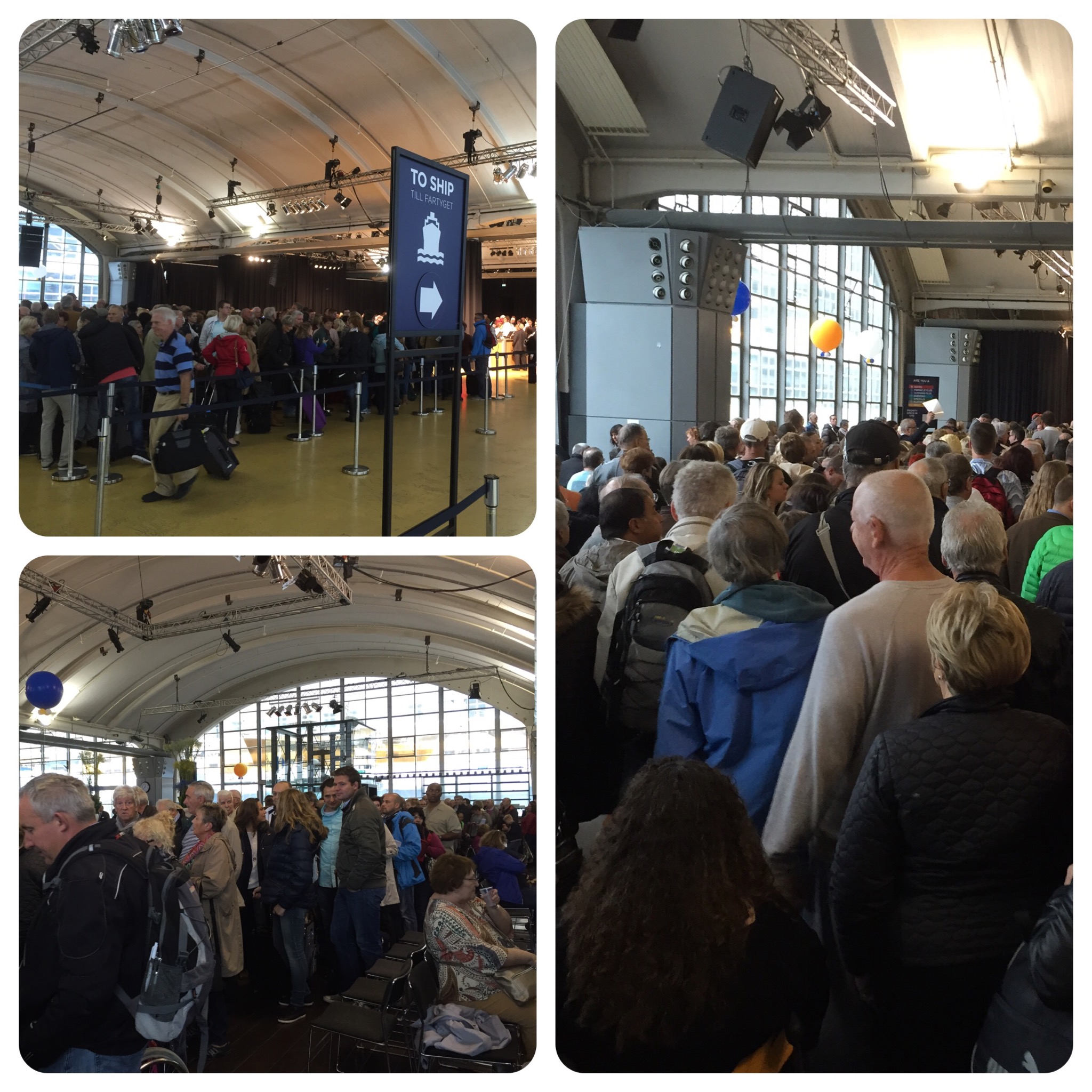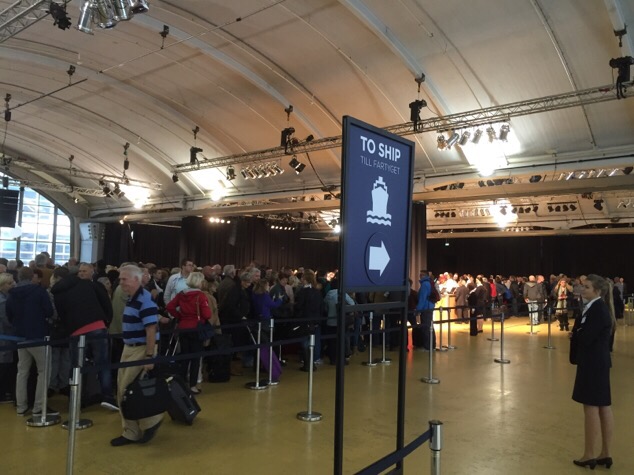 11:55 u. Het grote wachten kan beginnen. Er moeten 5000 passagiers aan boord.