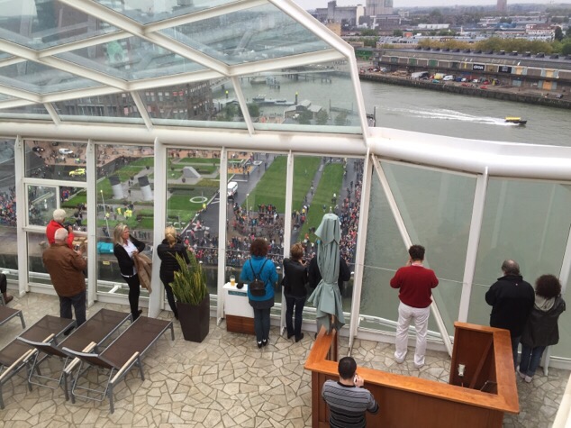 Natuurlijk, ik heb wel eens op een boot gevaren. Deze zomer nog met de ferry naar Zweden. Ook ooit met de nachtboot naar Schotland, maar een cruise, nee, dat niet. Dat avontuur mag ik op 14 en 15 oktober 2014 beleven aan boord van de Oasis of the Seas. Een gigantisch cruise-schip, dat normaal niet in Nederland komt, maar dat nu na een 5-jaarlijks onderhoud in Rotterdam weer afvaart richting het Caribisch gebied. En ik mag mee, 1 nacht, tot Southampton. Hier onder volgt dinsdag vanaf 9 uur mijn live verslag van de belevenissen aan boord van dit schip als het Nederland weer verlaat. Het is een avontuur, dat mij zelf een beetje een ‘Kuifje-gevoel’ geeft. We zullen zien of dat uitkomt.