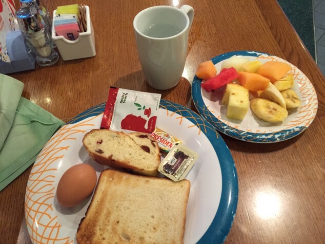 7:00 u. ( maar eigenlijk 6:00 u, want het is hier Engelse tijd) Heerlijk ontbijt.